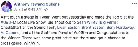 U93’s Local Flow Live judge Lwan Easton was contacted for feedback about the top five cut but chose not to respond. “Nah I think Imma fall back simply because I was a judge and all. Thanks for reaching out though,” Easton said.