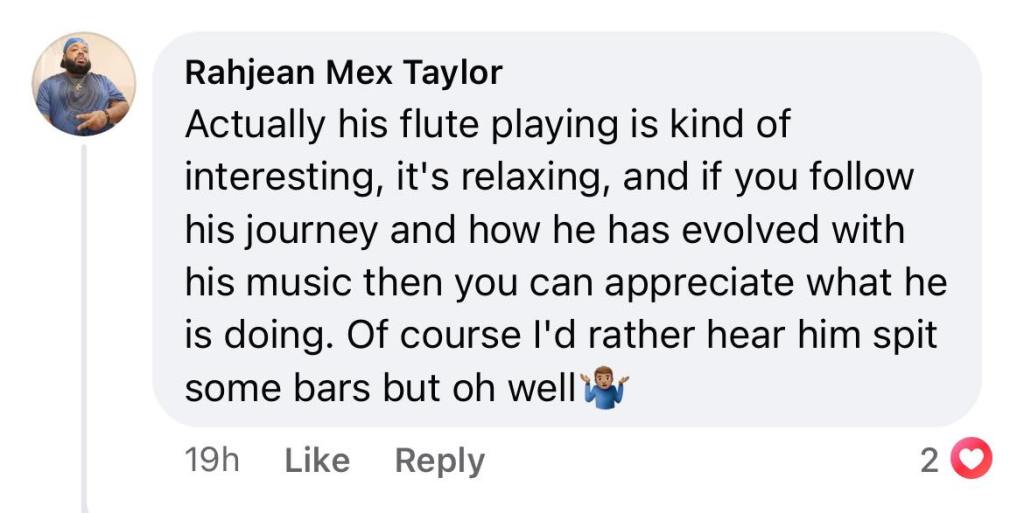Kerry Wilson wrote, “Don’t NOBODY wanna listen to a flute from a Hip-Hop artist.